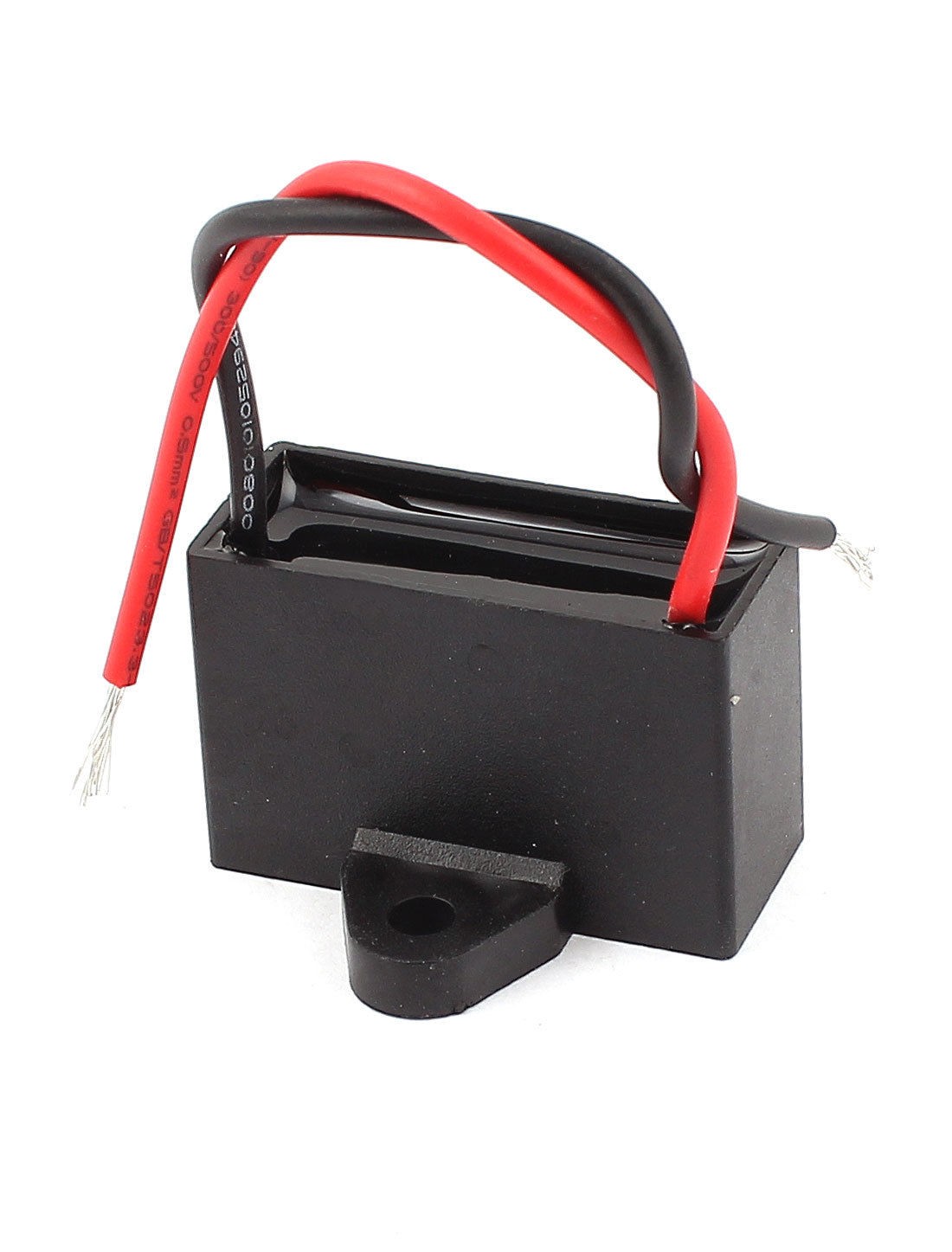 Product Name Motor Capacitor Model CBB61 Rated Voltage AC 450V 50/60Hz Capacitance 2uF Tolerance ±5% Temperature Coefficient 25/85/21 Overall Size(Not Included Pin) 38 x 16 x 25mm/1.5" x 0.63" x 1"(L*W*H) Wire Length 90mm/3.5" Fixing Hole Dia 5mm/0.2" Main Material Polypropylene Film Color Black Weight 20g