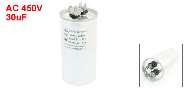 Product Name Motor Capacitor Model No. CBB65 Dielectric Material Metallized Polypropylene Film Housing Material Metal Capacitance 30uF Tolerance ±5% Rated Voltage AC 450V Frequency 50/60Hz Body Dimension 5 x 10cm / 2" x 4" (D * H) Operating Temperature 40/70/21 Color Silver Tone Weight 168g Package Content 1 x Motor Capacitor - Reviews