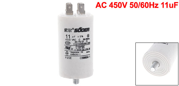 Product Name Motor Capacitor Model CBB60A-1 Dielectric Material Polypropylene Film Housing Material Plastic Capacitance 11µF Tolerance ±5% Rated Frequency 50/60Hz Rated Voltage AC 450V Size 6 x 4.5cm/ 2.4" x 1.8" (H*D) Thread Diameter 8mm/ 0.31" Color White Weight 58g Package Content 1 x Motor Capacitor - Reviews