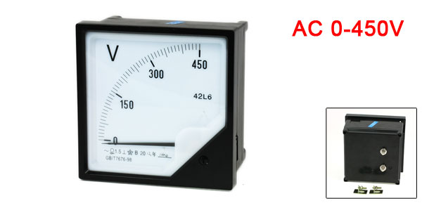 Product Name Analog Voltmeter Model No. 42L6 Measuring Voltage Range AC 0-450V Accuracy Class 1.5 Front Face Size 120 x120 x 12mm / 4.7" x 1.7" x 0.47"(L*W*T) Base Size(Not Included Screw) 110 x 110 x 60mm / 4.3" x 4.3" x 2.3"(L*W*Depth) Overall Depth 75mm / 2.95" Screw in Base Dia 4mm / 0.157" Color Clear, White, Black Material Metal, Plastic Net Weight 299g Package Content 1 x Analog Voltmeter, Installing Parts - Reviews