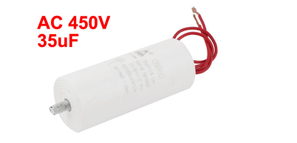 Product Name Motor Run Capacitor Model CBB60 Material(External) Plastic Main Color White Rated Capacitance 35uF Frequency 50/60Hz Tolerance ±5% Rated Voltage AC 450V Size 10.5 x 4.5cm / 4.1" x 1.8" (L*D) Cable Length 20cm / 7.9" Weight 184g Package Content 1 x Motor Capacitor - Reviews
