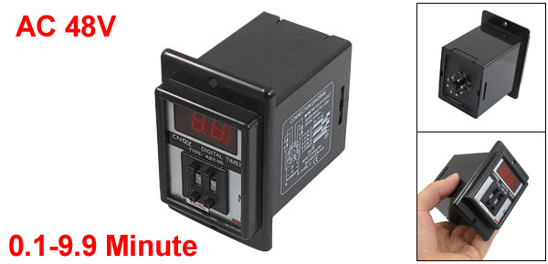 Product Name Time Relay Type ASY-2D Control Voltage AC 48V Frequency 50/60 Hz Contact AC 220V 5A Non-inductive Load Time Range 0.1-9.9 Minute Mount Size (Approx.) 60 x 48 x 68mm/ 2.36" x 1.89" x 2.68" (L*W*Depth) Front Face Size 8.5 x 5.7cm / 3.3" x 2.2"(L*W) Mount Hole Diameter 4.5mm/ 0.18" Total Length 8.8cm / 3.5" Main Color Black Net Weight 200g Package Content 1 x Digital Time Relay - Reviews