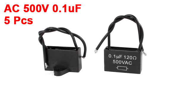 Product Name Motor Run Capacitor Material Polypropylene Film Rated Capacitance 0.1uF Resistance 120 Ohm Tolerance 5% Rated Frequency 50/60 Hz Rated Voltage 500V AC Overall Size 35 x 23 x 22mm/ 1.4" x 0.9" x 0.87"(L*W*T) Mount Hole Dia 4.5mm/ 0.18" Wire Length 15cm/ 6" Main Color Black Net Weight 68g Package Content 5 x Motor Run Capacitor - Reviews