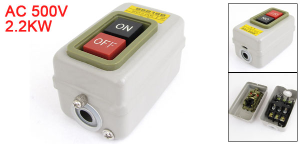 Product Name Push Button Switch Model BS216B Type ON-OFF, Three Phases Main Material Metal,Plastic Voltage AC 500V Power 2.2KW Total Size (Approx.) 8.3 x 4.7 x 5cm/ 3.3" x 1.9" x 2" (L*W*H) Mount Hole 9mm/ 0.35" Color Gray, Red, Black Main Color Gray Weight 135g Package Content 1 x Push Button Switch - Reviews