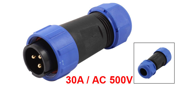 AC 500V/30A 3P Pins Male Plug Waterproof IP68 Cable Gland Aviation Connector