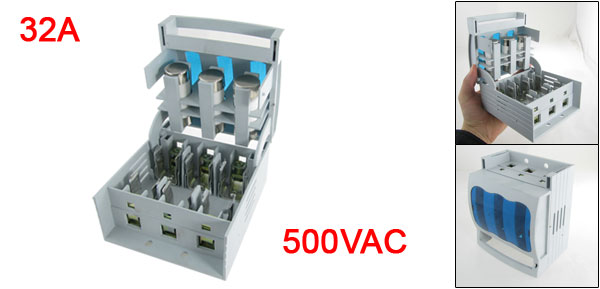 Product Name Fuse Isolating Switch Model No. HR17B-100/30 Fuse Type 22 x 58mm / 0.87" x 2.28"(D*H) Rated Voltage 500VAC Rated Current 32A Rated Limiting Short Current 50kA Rated Heating Current 100A Poles Quantity 3 Fixing Holes Diameter 5.9mm / 0.23", 6.4mm / 0.25" Fixing Hole Spacing 62mm / 2.4" 31 x 103mm / 1.2" x 4"(L*W) Overall Size 119 x 104 x 75.6mm / 4.7" x 4.1" x 3"(L*W*H) External Material Plastic Net Weight 555g Package Content 1 x Fuse Isolating Switch - Reviews