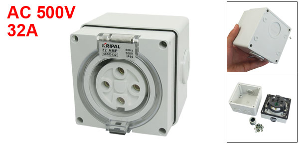 Product Name Industrial Socket Model 56SO432 Rated Current 32A Rated Voltage AC 500V Frequency 50Hz Socket Type 4 Round Pin Waterproof Grade IP66 Pin Hole Diameter 7.5mm/0.3" Fit for Line Core Diameter 5mm/0.2" Fit for Wire Diameter(CUT-OUT) 32mm/1.3" Mount Hole Center Distance 84 x 84mm/3.3" x 3.3"(L*W) Fixing Mount Hole Diameter 6mm/2.4" Total Size 99 x 99 x 92mm/3.9" x 3.9" x 3.6"(L*W*H) External Material Plastic Color Clear, White Net Weight 550g Package Content 1 x Industrial Socket - Reviews