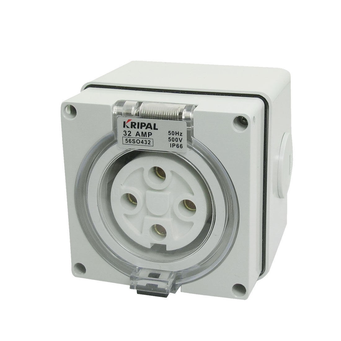 AC 500V 32A IP66 Three Phase 4 Round Pin 56SO432 Industrial Socket Connector