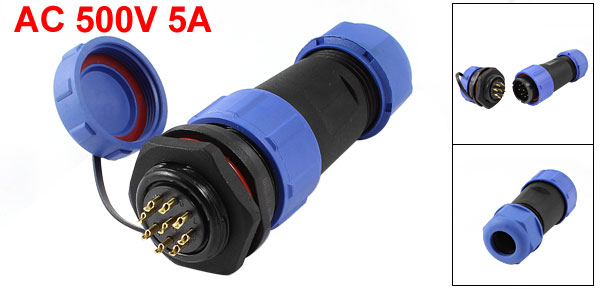 Product Name Aviation Cable Connector Plug w Cap Model SP21-9 Degree of Protection IP68 Rated Current / Voltage 5A / AC 500V Withstand Voltage AC 1500V Panel Thread Diameter 21mm/ 0.83" Cable Range 8-12mm Pin Quantity 9 Pin Soldering Pin Diameter 1.5mm Total Size 30 x 80mm/1.2" x 3.1"(D*L) Material Plastic, Metal Color Blue, Black Weight 43g Package 1 x Aviation Cable Connector Plug w Cap