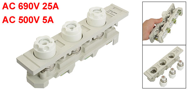 AC 500V 5A Ceramic Fuse Link E27 3P 690V 25A Screw Base w Gray Plastic Holder