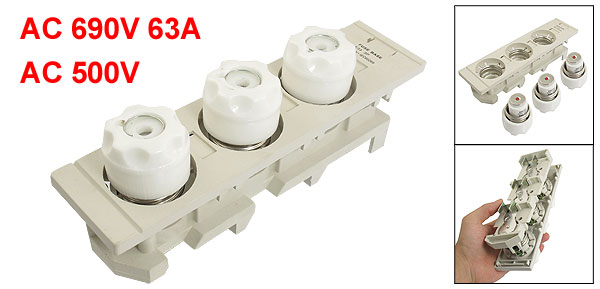 AC 500V 63A Ceramic Fuse Link E33 3P 690V Screw Base w Gray Plastic Holder