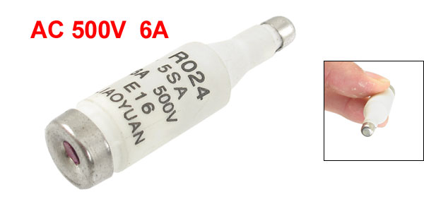 Product Name Screw Fuse Link Model R024 5SA Rated Voltage AC 500V Rated Current 6A Dimension 11.5 x 49mm/ 0.45" x 1.9" (D*L) Material Metal, Ceramic, Electronic Parts Main Color White, Silver Tone Net Weight 9g Package Content 1 x Screw Fuse Link - Reviews