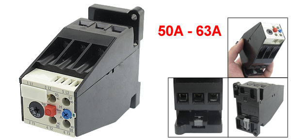 Product Name Thermal Overload Relay Model JRS2-63F3UA59 Material Plastic, Electronic Components Thermal Contact 1 NO + 1 NC Thermal Relay Rated Current 63A Adjustable Current Range 50A - 63A Thermal Element Rated Current 10A Rated Insulation Voltage 690V Total Size (Approx.) 8.3 x 4.4 x10.3cm / 3.3"x1.7"x4.1" (L*W*H) Main Color Black Weight 285g Package Content 1 x Thermal Overload Relay - Reviews