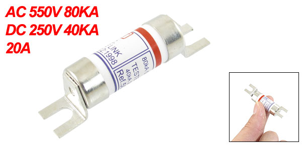 AC 550V/80KA DC 250V/40KA 20A Fast Acting Bolt In Terminal Fuse Link