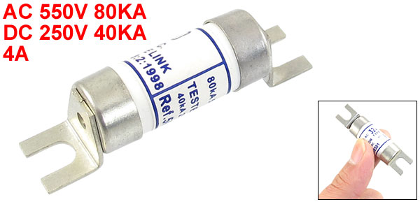 AC 550V/80KA DC 250V/40KA 4A Ceramic Metal Fast Acting Bolt Fuse Link