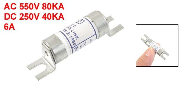 AC 550V/80KA DC 250V/40KA 6A Ceramic Metal Fast Acting Bolt Fuse Link