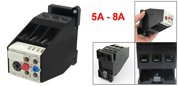 Product Name Thermal Overload Relay Model JRS2-63F3UA59 Material Plastic, Electronic Components Thermal Contact 1 NO + 1 NC Thermal Relay Rated Current 8A Adjustable Current Range 5A - 8A Thermal Element Rated Current 8A Rated Insulation Voltage 690V Total Size (Approx.) 8.3 x 4.4 x10.3cm / 3.3"x1.7"x4.1" (L*W*H) Main Color Black Weight 282g Package Content 1 x Thermal Overload Relay  - Reviews