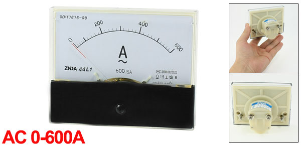 Product Name Analog Ammeter Model 44L1 Accuracy Class 1.5 Measuring Current Range AC 0-600A Front Face Size 100 x 80 x 13.5mm / 3.9'' x 3.1'' x 0.5'' (L*W*Depth) Base Size(Not Included Screw) 36 x 49 x 31.5mm / 1.4'' x 1.9'' x 1.2'' (L*H*Depth) Overall Depth 60.5mm / 2.4" Thread Dia. 3.9mm / 0.15'' Material Plastic Net Weight 168g Package Content 1 x Analog Ammeter - Reviews