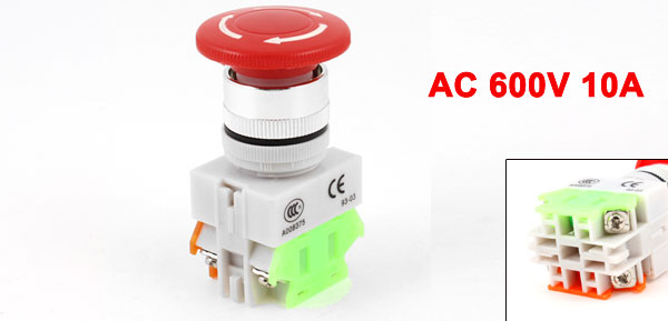 AC 600V 10A 40mm Dia Red Sign Rotary Mushroom Emergency Stop Push Button Switch