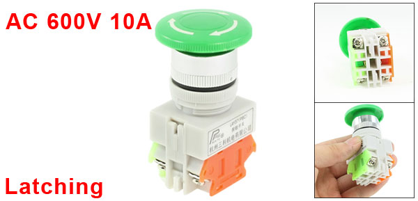 Product Name Push Button Switch Contact Type 1NO 1NC (DPST) Action Type Latching(Green Mushroom) Ith 10A Ui 600V Terminal Quantity 4 Panel Cutout Diameter 24mm / 0.9" Fit Panel Max. Thickness 7mm / 0.3" Mushroom Head Button Diameter 4cm / 1.6" Total Size(Approx) 3.2 x 2.9 x 7.2cm / 1.3" x 1.2" x 2.8" (L*W*H) External Material Plastic, Metal Net Weight 41g Package Content 1 x Push Button Switch - Reviews