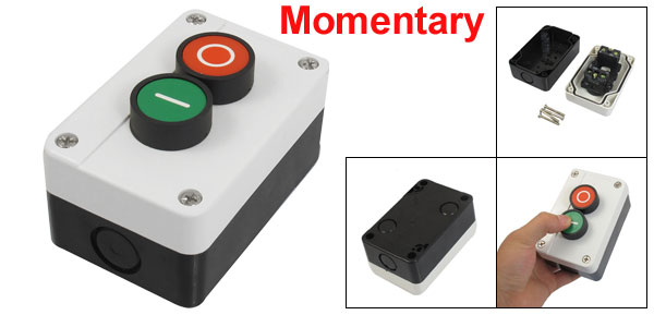 Product Name Push Button Switch Material Plastic, Metal Action Type Momentary(1NO+1NC) Ith 10A Ui 660V AC-15 240V 3A Uimp 6kV Terminal Number 4 Mounting Hole Diameter 8mm / 5/16" Hole Distance(center to center) 87x 51mm / 3.4" x 2"(L*W) Button Diameter (Approx.) 2.6cm / 1" Total Size (Approx.) 102 x 65 x 60m / 4" x 2.6" x 2.4" (L*W*T) Button Color Red, Green Weight 159g Package Content 1 x Push Button Switch - Reviews
