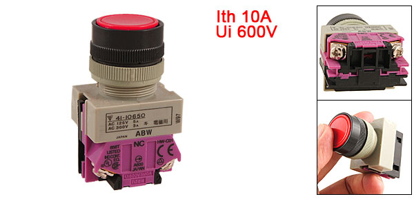 Product Name Push Button Switch Action Type Momentary Contact Type 1 NC(Normally Close) Operation Category AC 125V 5A AC 300V 3A Ith 10A Ui 600V Mount Hole Diameter 2.2cm / 0.87"(7/8") Fit Panel Thickness(Adjustable) Max 0.6cm / 0.24" Button Diameter 2.3cm/ 0.9" Overall Size 3.6 x 2.9 x 6.4cm/ 1.4" x 1.1" x 2.5"(L*W*H) Material Plastic, Electronic Parts Color As Picture Shown Weight 32g Package Content 1 x Push Button Switch - Reviews