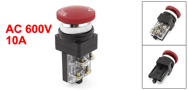 AC 600V 10A Red Sign Mushroom Button Emergency Stop Pushbutton Switch 1NO 1NC