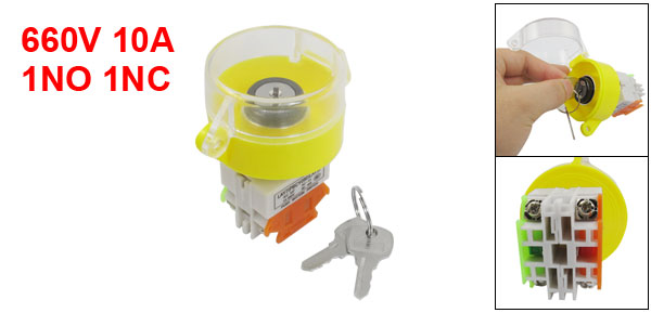 AC 660V 10A 1NO 1NC 2 Position Keylock Key Lock Push Button Switch w Cover