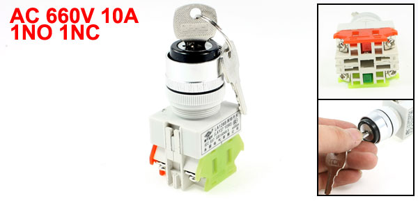 AC 660V 10A 1NO 1NC DPST Key Rotary Start Locking Style Push Button Switch