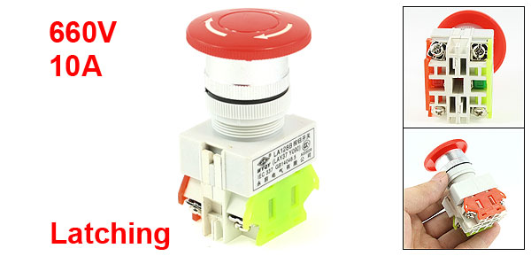 AC 660V 10A 1NO 1NC DPST Latching Red Mushroom Head Push Button Switch