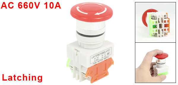 AC 660V 10A 1NO 1NC DPST Red Mushroom Latching Emergency Stop Push Button Switch
