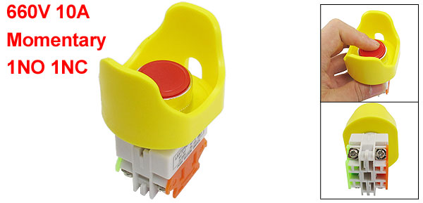 Product Name Pushbutton Switch Action Type Momentary Button Type Flat Button Contact Type 1NO 1NC(DPST) Ui(AC-15) 660V Ith(AC-15) 10A Terminals Quantity 4 Screw Terminals Thread Diameter 23mm/0.91" Button Diameter 25mm/0.98" Suitable Board(Max.) 5mm/ 0.197"(Adjustable) Overall Size 55 x 48 x 86mm / 2.17" x 1.89" x 3.39" (L*W*H) Material Plastic, Metal, Electric Parts Color Gray, Yellow, Red Net Weight 50g Package Content 1 x Pushbutton Switch - Reviews