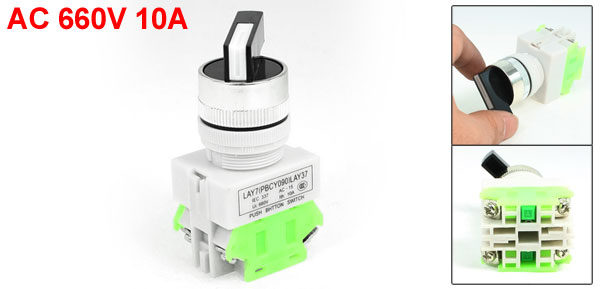 Product Name Push Button Switch Contact Type 2NO(DPST) Action Type Long Rotary Selector Latching Position Number 3 Position Ith 10A Ui 660V Screw Terminal Quantity 4 Panel Cutout Diameter 24mm / 0.9"(7/8") Fit Panel Max. Thickness 7mm / 0.3" Total Size(Approx) 3.7 x 3 x 7.4cm / 1.5" x 1.2" x 2.9" (L*W*H) External Material Plastic, Metal Color Black, White, Yellow Green Net Weight 38g Package Content 1 x Push Button Switch - Reviews