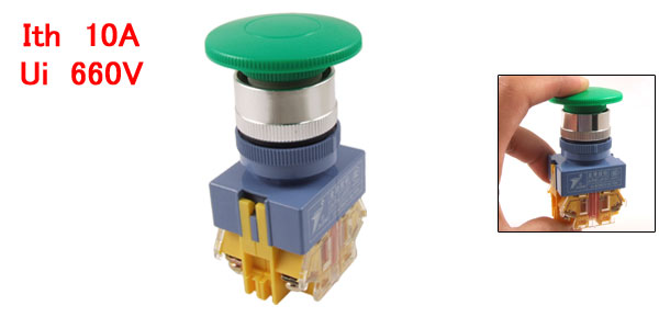 AC 660V 10A 40mm Button Green Sign Mushroom Momentary Pushbutton Switch