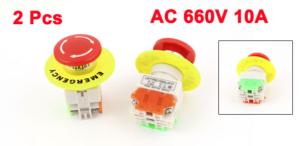 AC 660V 10A 40mm Red Mushroom Head Lock Rotation Push Button Switch 1 NO NC 2pcs
