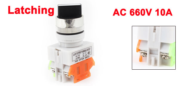Product Name Push Button Switch Contact Type On-Off Action Type Latching Rotary Selector Poles DPST Position Number 2 Position Ith 10A Ui 660V Terminal Quantity 4 Panel Cutout Diameter 22mm / 0.86" Button Diameter(Approx) 2.8cm / 1.1" Total Size(Approx) 3.7 x 3 x 7.4cm / 1.5" x 1.2" x 2.9" (L*W*H) External Material Plastic, Metal Button Color Black Weight 39g Package Content 1 x Push Button Switch - Reviews