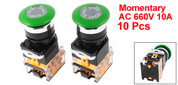 AC 660V 10A DPST Green Mushroom Cap 4 Screw Terminal Emergency Stop Switch 10Pcs