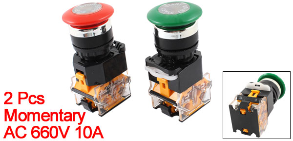 AC 660V 10A DPST NO+NC Red Green Mushroom Cap Emergency Press Stop Switch 2Pcs