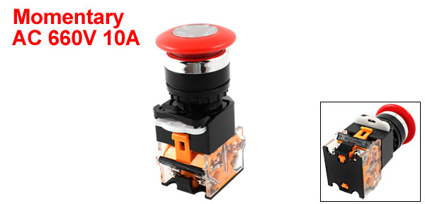 AC 660V 10A DPST Red Mushroom Cap 4 Terminal Momentary Emergency Stop Switch