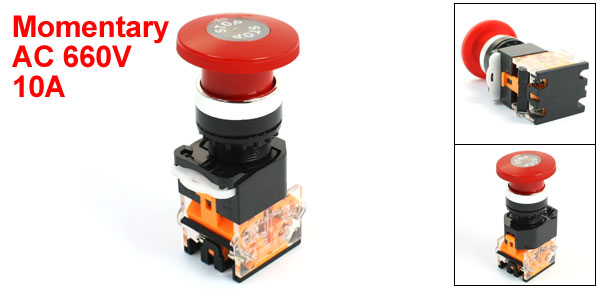 AC 660V 10A DPST Red Mushroom Head 4 Terminal Momentary Emergency Stop Switch