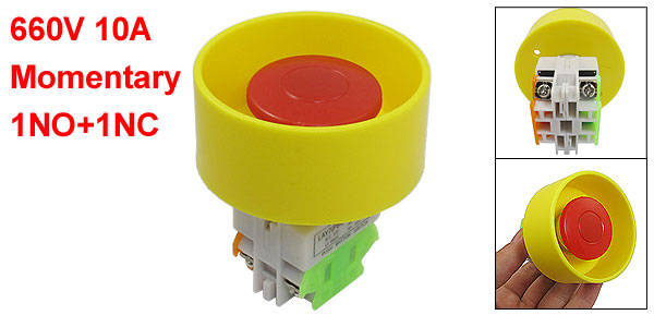 Product Name Push Button Switch Material Plastic, Metal Action Type Momentary Contact Type 1NO+1NC Ith 10A Ui 660V IEC 337 Terminal Quantity 4 Mount Hole Diameter 22mm / 7/8" Fit Panel Thickness(adjustable) 6mm / 15/64"(max.) Total Size (Approx.) 67 x 75mm / 2.6" x 3"(D*H) Button Color Red Weight 68g Package Content 1 x Push Button Switch - Reviews
