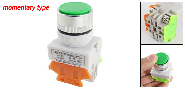 Product Name Push Button Switch Material Plastic, Metal Ith 10A Ui 660V Terminal Number 4 Contact Type 1 NO(Normally Open) + 1 NC(Normally Close) Action Type Momentary Mounting Hole Diameter 2.2cm / 0.87"(7/8") Fit Panel Thickness(Adjustable) Max 0.5cm / 0.2" Button Diameter (Approx.) 2.2cm / 0.87" Total Size (Approx.) 6.3 x 3.6 x 3cm / 2.5" x 1.4" x 1.2" (L*W*T) Button Color Green Weight 38g Package Content 1 x Push Button Switch - Reviews