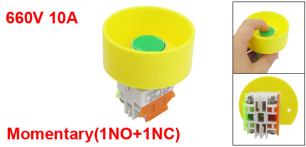 Product Name Push Button Switch Material Plastic, Metal Action Type Momentary Contact Type 1NO+1NC Ith 10A Ui 660V IEC 337 Terminal Quantity 4 Mount Hole Diameter 22mm / 7/8" Fit Panel Thickness(adjustable) 6mm / 15/64"(max.) Total Size (Approx.) 67 x 75mm / 2.6" x 3"(D*H) Button Color Green Weight 61g Package Content 1 x Push Button Switch - Reviews