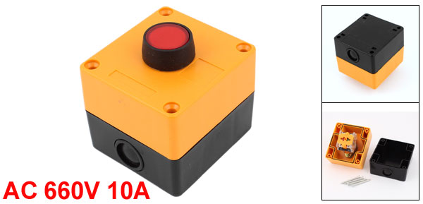 Main Color Red, Orange, Black Brand DMiotech Country of Manufacture CHINA Action Type Momentary Model LA39 Mounting Hole Diameter 5mm / 0.2" Button Diameter 25mm / 1" Mounting Hole Spacing 6.4 x 5.8cm / 2.5" x 2.3" (L*W) Material Plastic Contact Type SPDT (1 NO 1 NC) Ith 10A Ui AC 660V Box Size 7.5 x 7 x 6.3cm / 3" x 2.7" x 2.5" (L*W*H) Product Name Push Button Switch Net Weight 169g Package Content 1 x Push Button Switch Station - Reviews