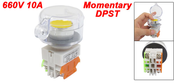AC 660V 10A Momentary DPST Panel Mount Clear Cap Yellow Button Pushbutton Switch