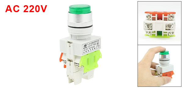 Product Name Push Button Switch Contact Type 1NO, 1NC Ith 10A Ui 660V Terminal Quantity 6 LED Light Color Green LED Light Voltage AC 220V Panel Cutout Diameter 22mm / 0.9" Fit Panel Max. Thickness 6.5mm / 0.26" Total Size(Approx) 8.5 x 3.5 x 3cm / 3.35" x 1.4" x 1.2" (L*W*H) External Material Plastic, Electric Parts Color White, Green Net Weight 60g Package Content 1 x Push Button Switch - Reviews