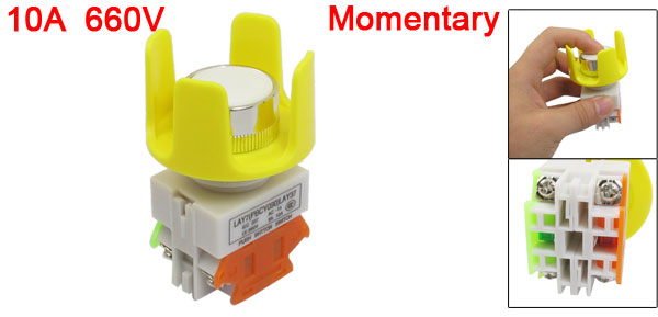 Product Name Push Button Switch Contact Type 1 NO(Normally Open) + 1 NC(Normally Close) Action Type Non Latching Ith 10A Ui 660V Mounting Hole Dia 22mm/0.8" Button Diameter 2.3cm / 0.9" Fit Panel Thickness(adjustable) 5mm/0.19".Max Total Size 7.5 x 4.6 x 2.9cm / 3.5'' x 1.8'' x 1.1"(L*W*T) Main Material Plastic, Metal Main Color White, Yellow Weight 42g Package Content 1 x Push Button Switch - Reviews