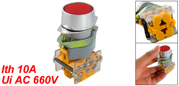 Product Name Push Button Switch Model No. LA39-11BN Contact Type 1 NO(Normally Open) + 1 NC(Normally Close) Action Type Momentary Ith 10A Ui AC 660V Panel Cutout Diameter 2.2cm / 0.87"(7/8") Fit Panel Thickness(Adjustable) Max 0.8cm / 0.3" Button Diameter 2.4cm / 0.94" Total Size 3.6 x 2.9 x 6.5cm / 1.4'' x 1.1'' x 2.6'' (L*W*H) Main Material Plastic, Metal Main Color Push Button: Red Body: Orange, Silver Tone, Gray Weight 63g Package Content 1 x Push Button Switch - Reviews