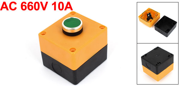 Product Name Push Button Station Action Type Momentary Type Ith 10A Rating AC 660V 10A Contact Type SPDT (1 NO 1 NC) Hole Diameter 5mm/ 0.2" Button Dia 29mm/1.2" Box Size 76 x 70 x 64mm/ 3" x 2.8" x 2.5" (L*W*H) Switch Size 55 x 29mm/ 2.2" x 1.2" (H*Max.D) Nails Size 45 x 3mm/1.8" x 0.1"(L*W) Mounting Hole Diameter 5mm/ 0.2" Mounting Hole Distance 64 x 58mm(Center to Center) Button Color White External Material Plastic External Color Black, Orange, White Total Weight 132g Package Content 1 x Push Button Station