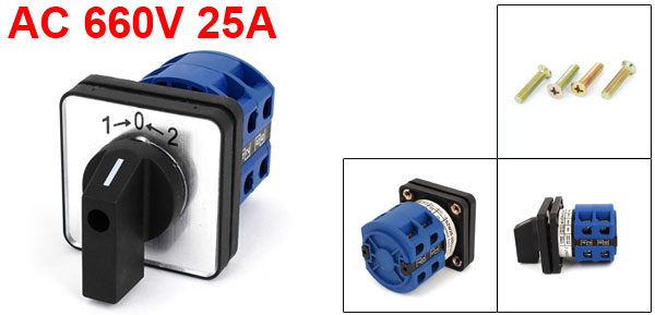 Product Name Changeover Switch Model No. SZW26-25B Voltage AC 660V Ith 25A Position 3 Positions (ON-OFF-ON) Power (380V-440V, 220V-240V) AC-21/AC-22: 25A